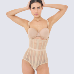 Revealing its seductiveness and elegance, the girdle with transparent inserts promises an impressive look. Made from quality mesh, it combines durability and comfort, while the thick underwired bustier and long shape ensure perfect support and fit. The lace-up back not only adds a stylish accent, but also allows you to customize the waist to your liking. Regardless of the color you choose – black, white or beige -this corset will become an integral part of your wardrobe, emphasizing your femininity and attractiveness at every step.